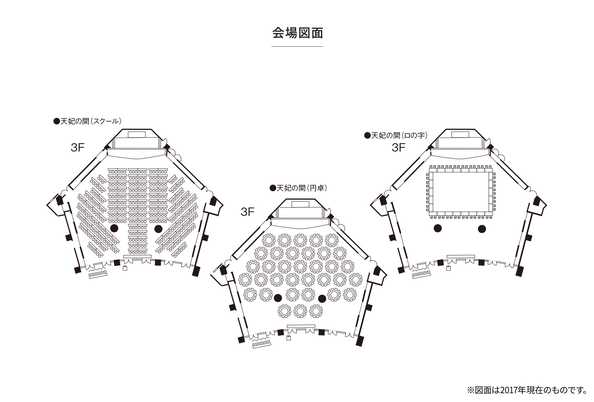 | 和宴会場 福木 | 50 | 2.5 | (注1)会議は各種ミーティングパッケージ及び時間貸しを準備しておりますのでお問い合わせ下さい。 |