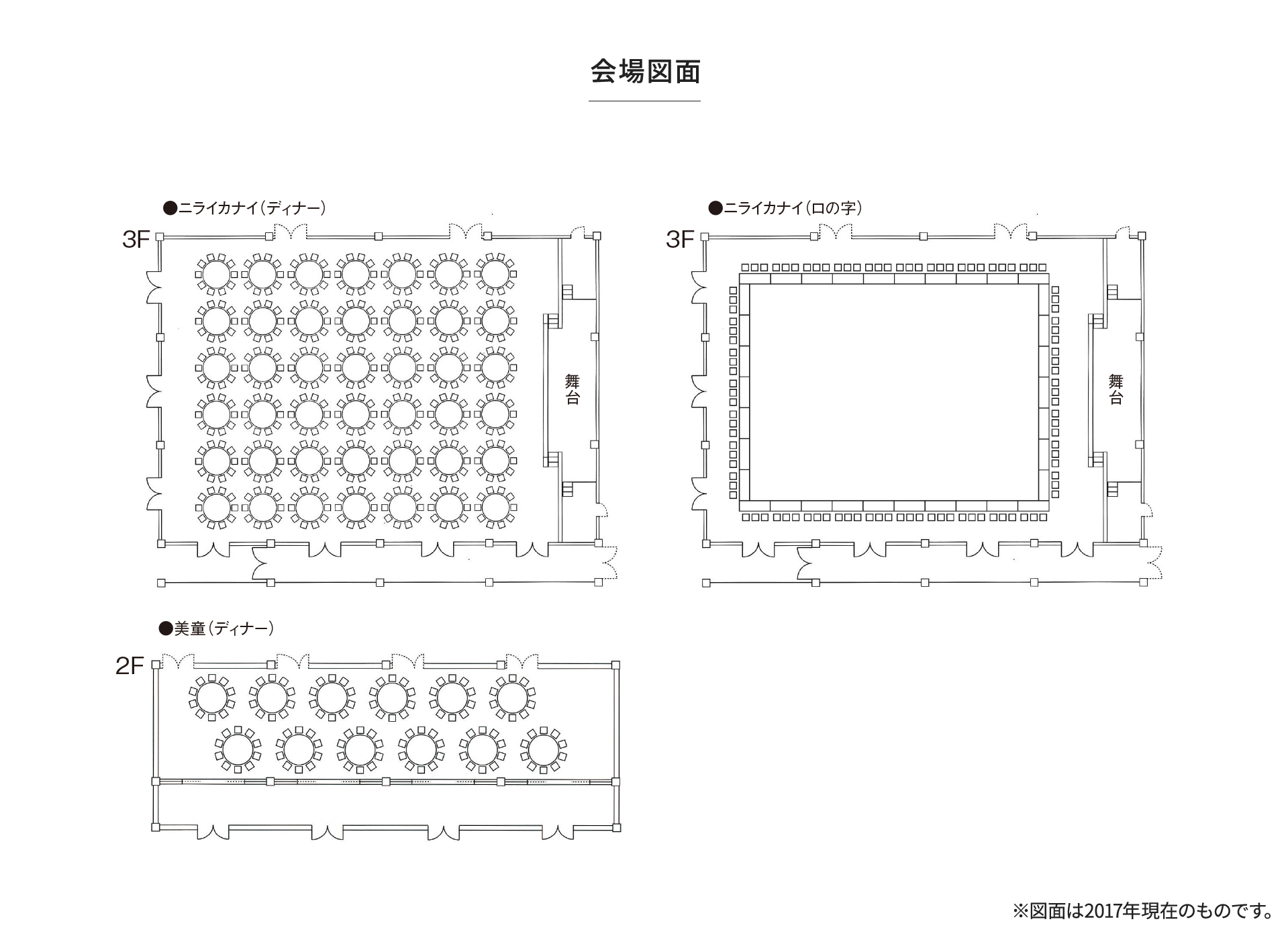 | Niraikanai | 600 | 294 | 420 | 400 | 640 | 8.7 | 含税/1h 110000日元~ | 附带设施:舞台・照明・音响器材 大型显示器 条件等:9点~21点 |