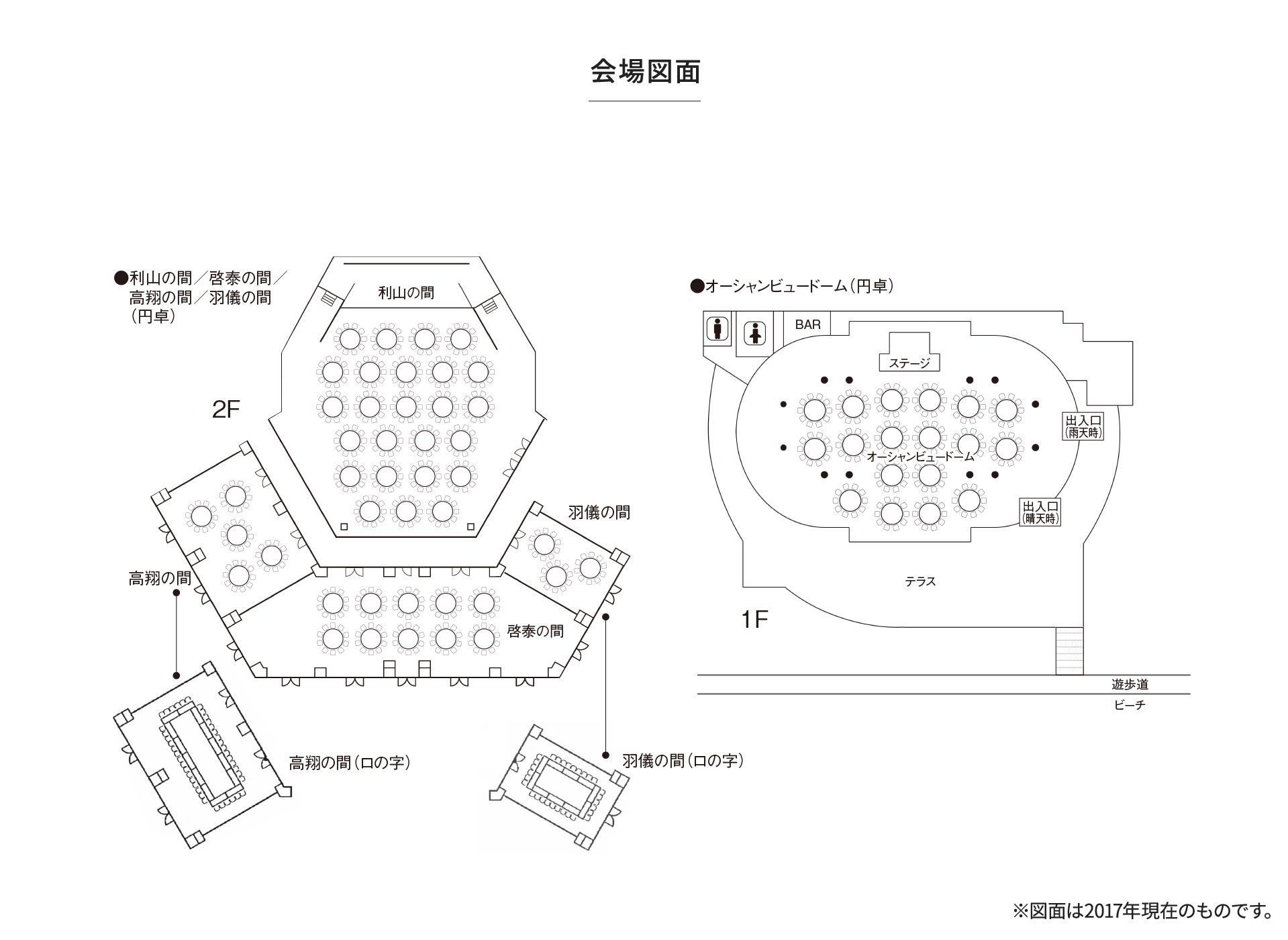 | 海景圆顶大厅 | 不可 | 不可 | 180 | 200 | 577 | 6.9 | 不含税/1h 100000日元 |