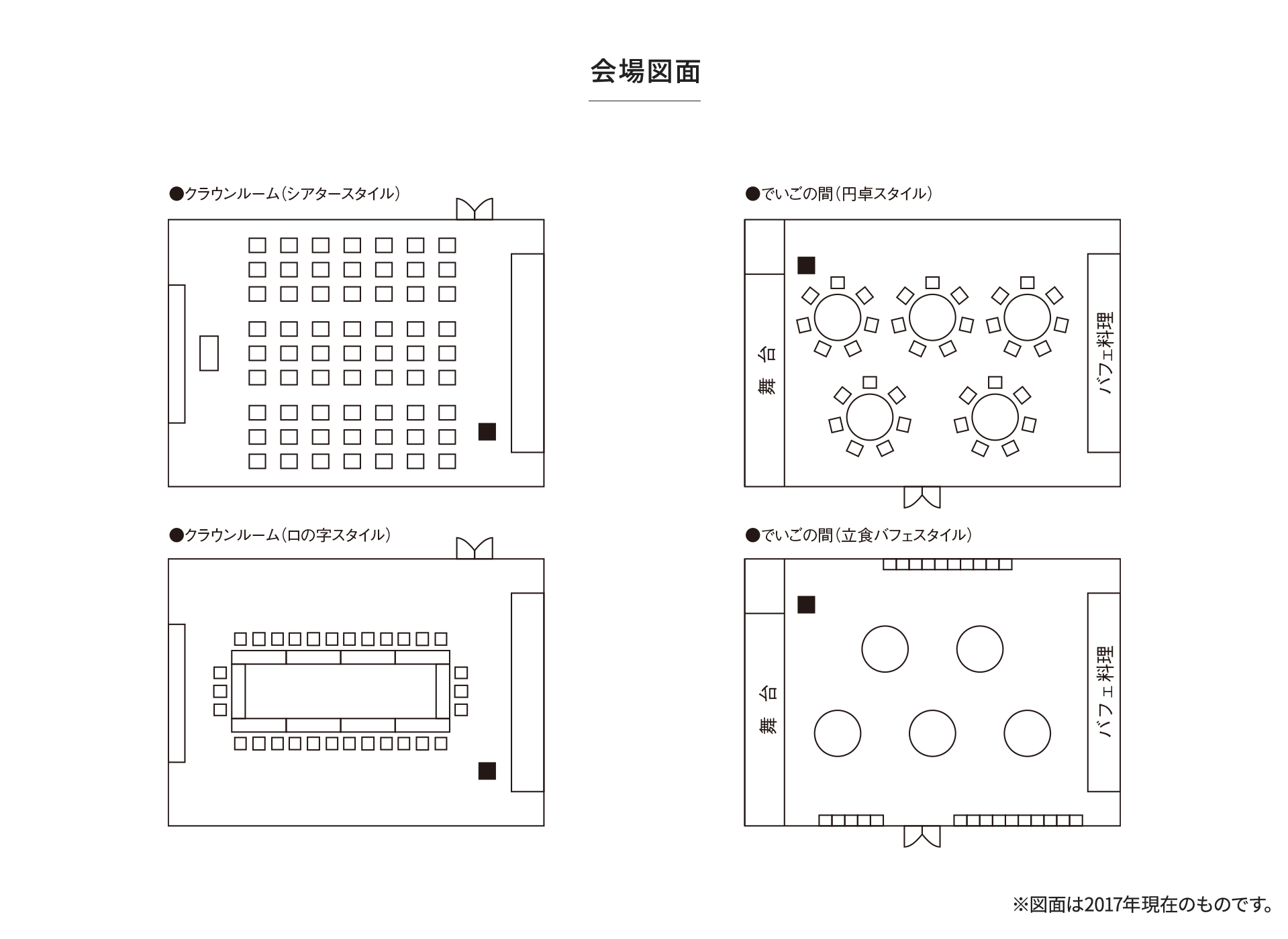 | 剧院式 | 教学式 | 圆卓餐 | 自助餐 | |||||